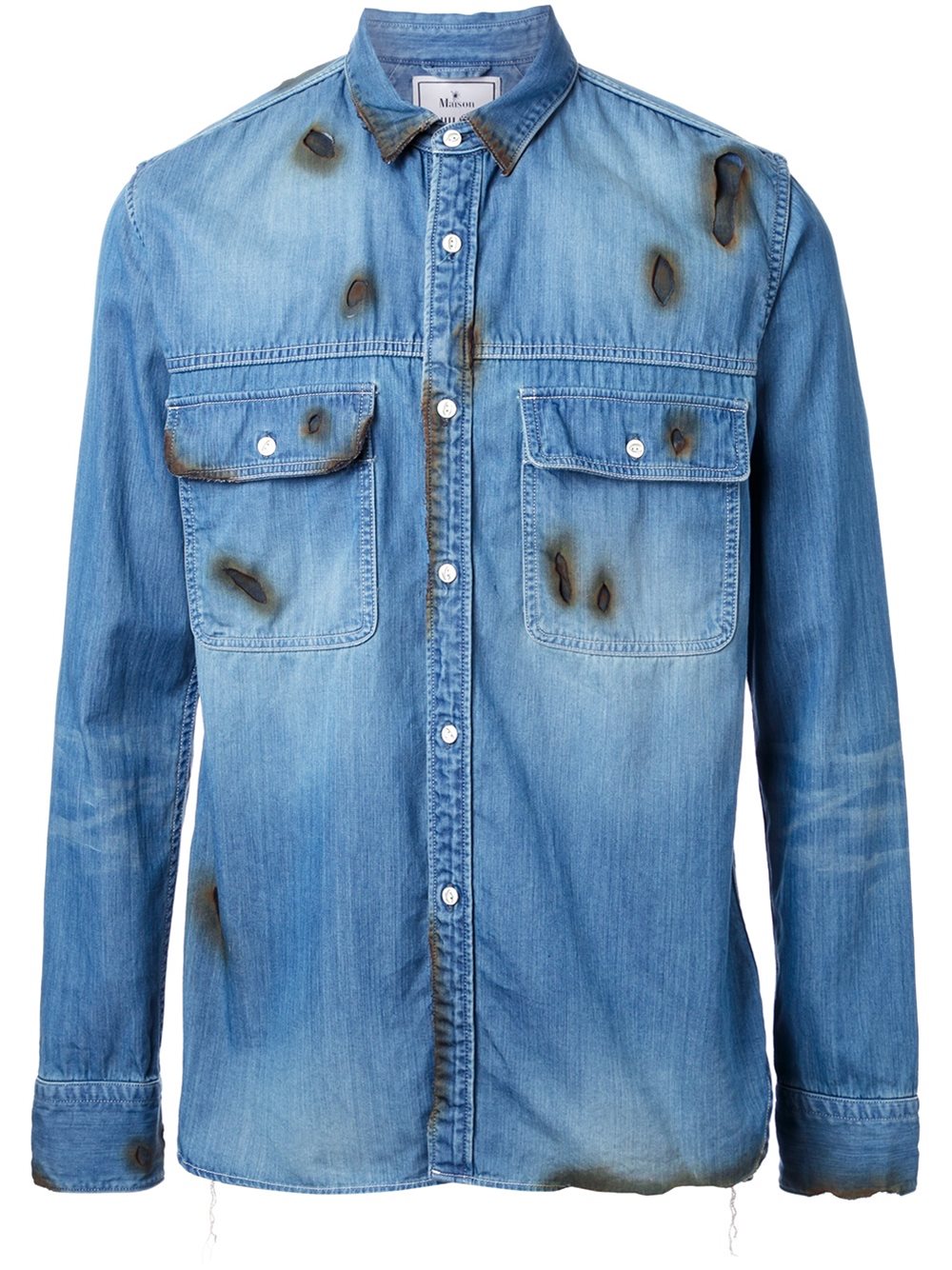 - Miharayasuhiro 靛蓝色 全棉 仿旧牛仔衬衫。