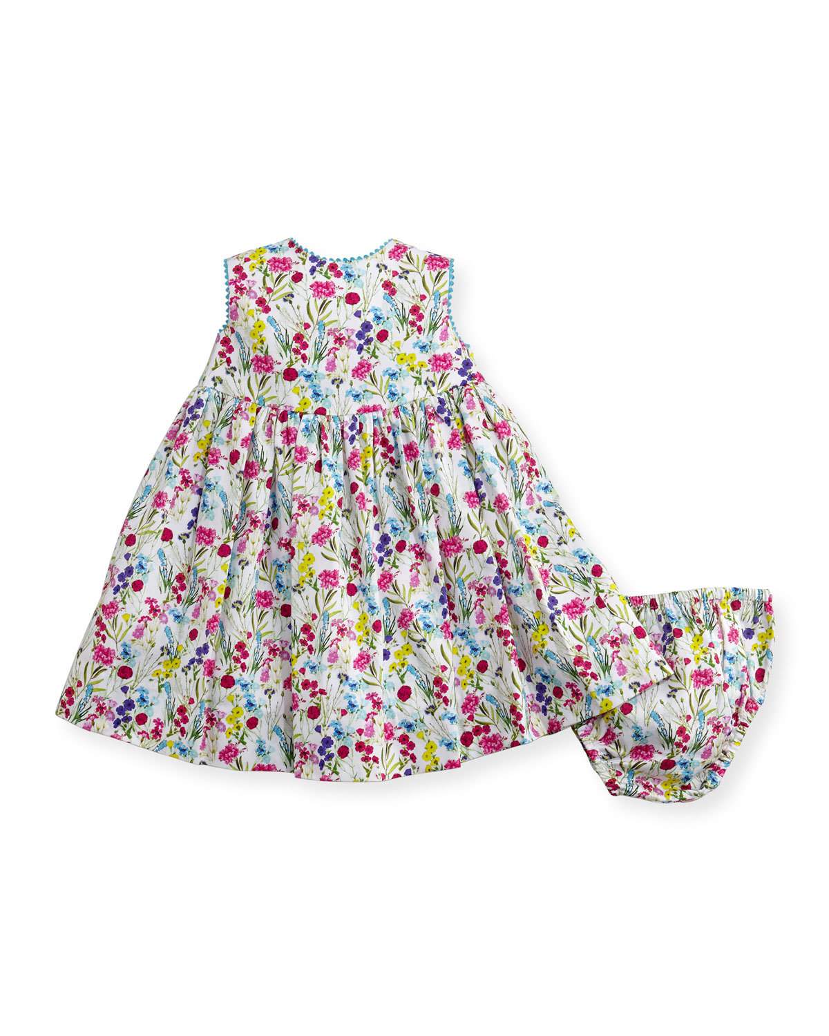 Botanical Flora Poplin Dress w/ Bloomers, Blue/Multicolor, Size 12-24 Months
