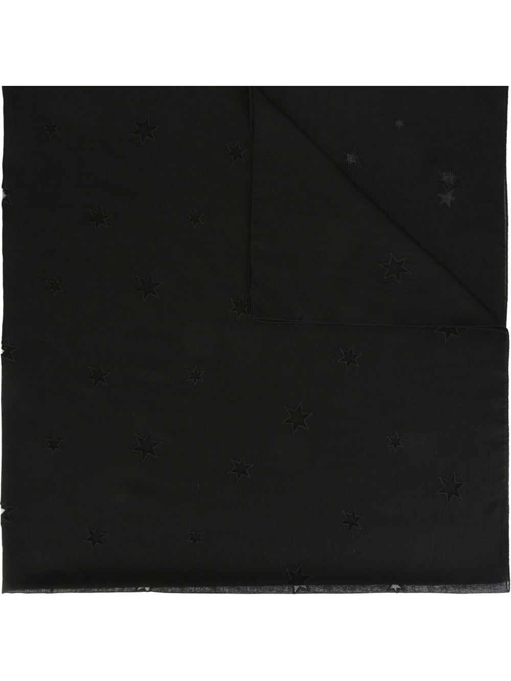- Saint Laurent 黑色 羊毛与丝绸混纺 星星刺绣围巾。