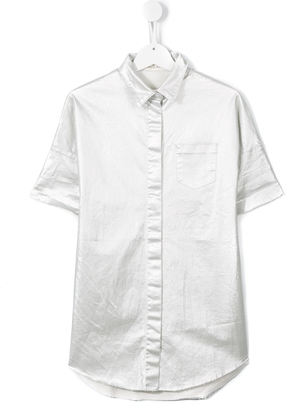 - Andorine 银色 弹性棉质 磨损边长款衬衫。