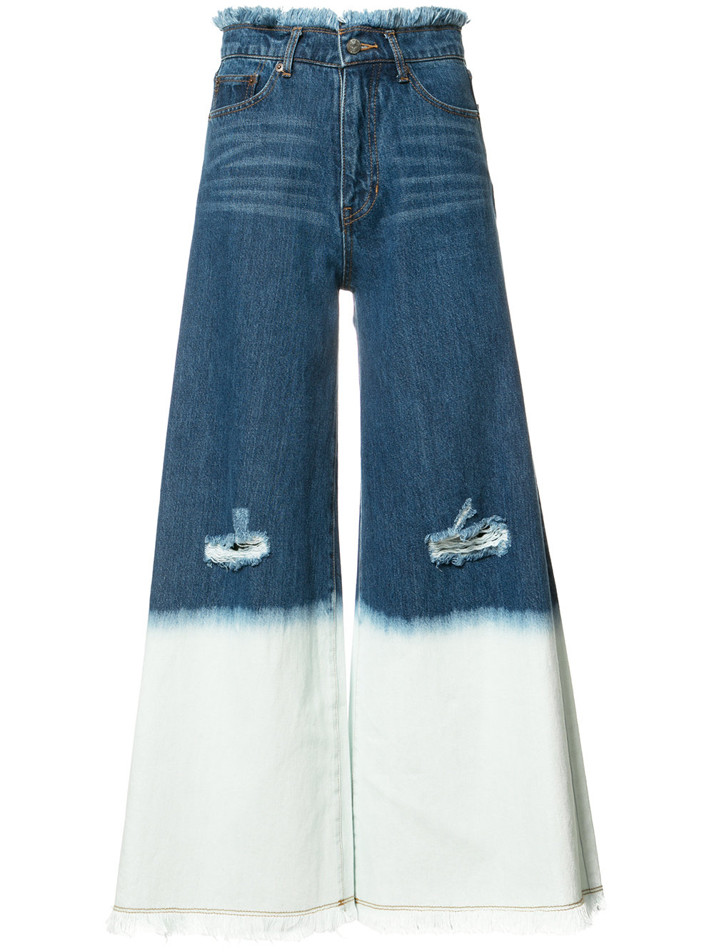 - Indigo blue cotton wide-legged ripped cropped jeans from Maison MIHARA YASUHIRO.