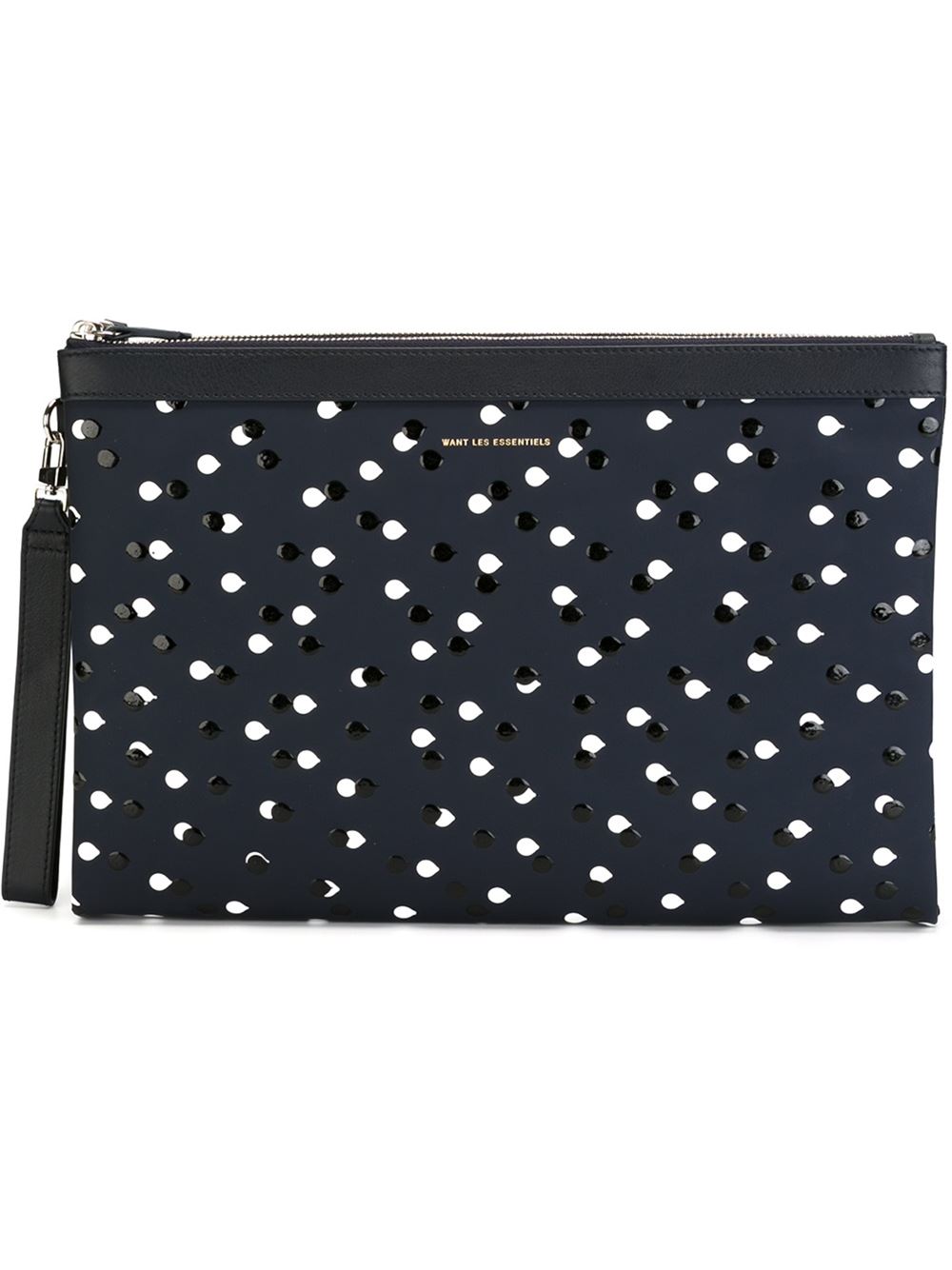 - Want Les Essentiels De La Vie 海军蓝色 牛皮 'Barajas'手拿包。此商品男女适用。