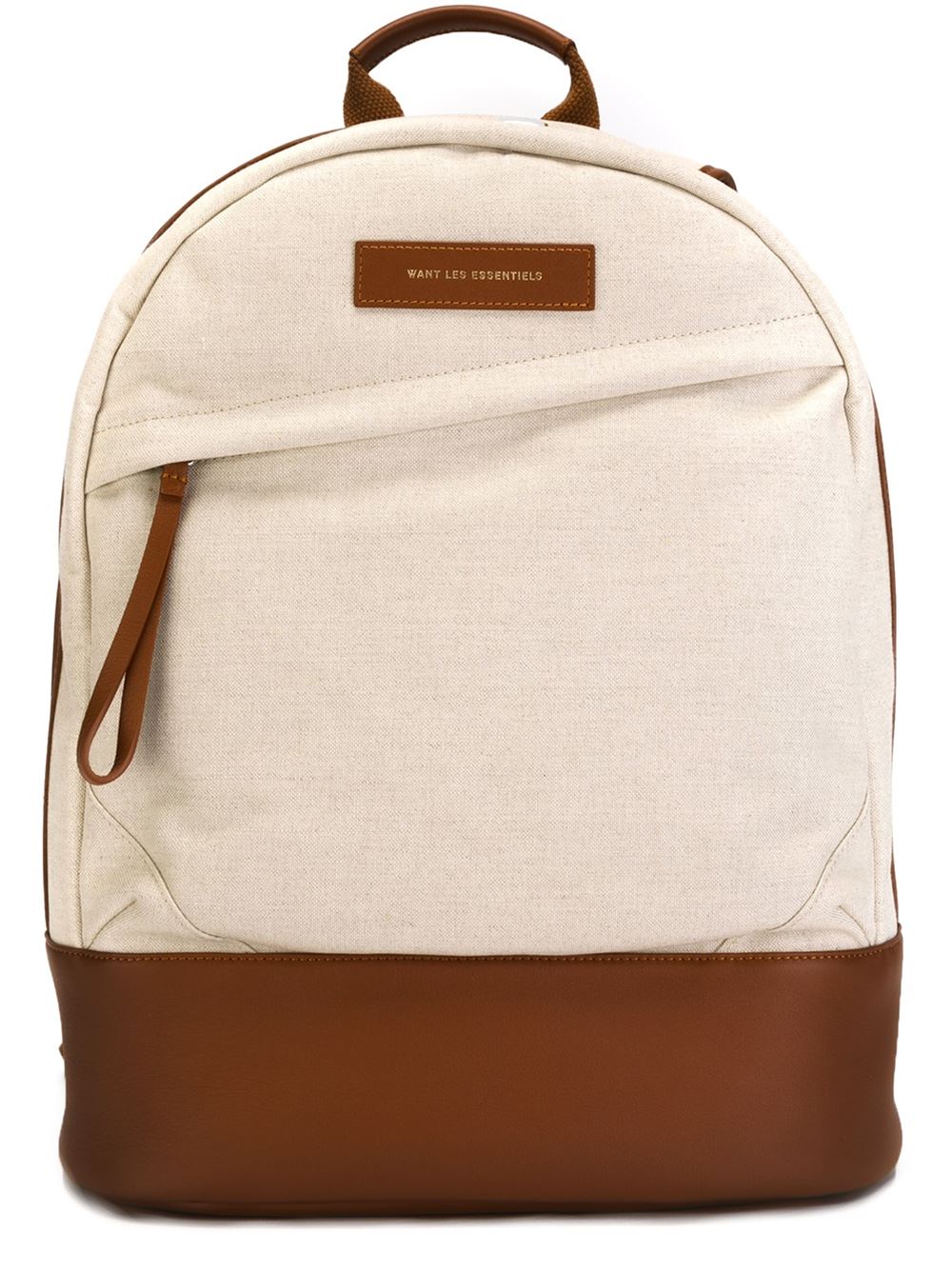 - Want Les Essentiels De La Vie 米色与褐色 全棉与牛皮 'Kastrup'背包。此商品男女适用。