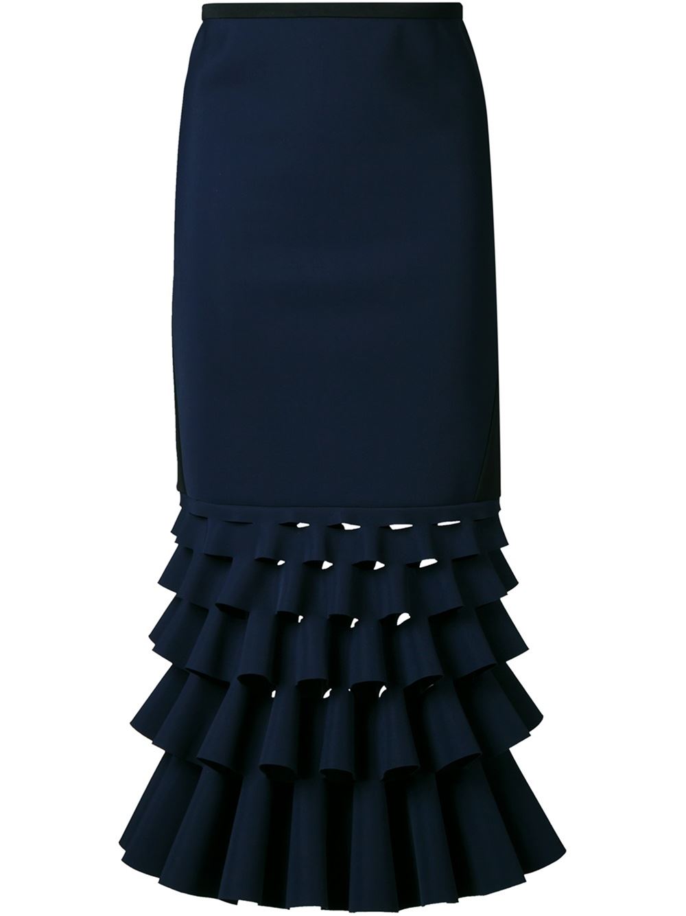 - Dion Lee 靛蓝色与黑色 荷叶边半身裙。