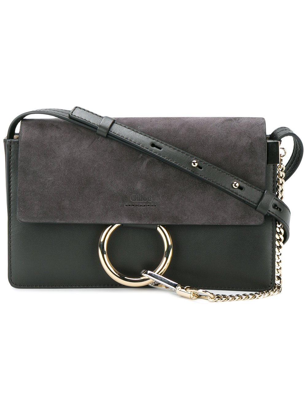 - Grey suede and leather small Faye shoulder bag from Chloé.