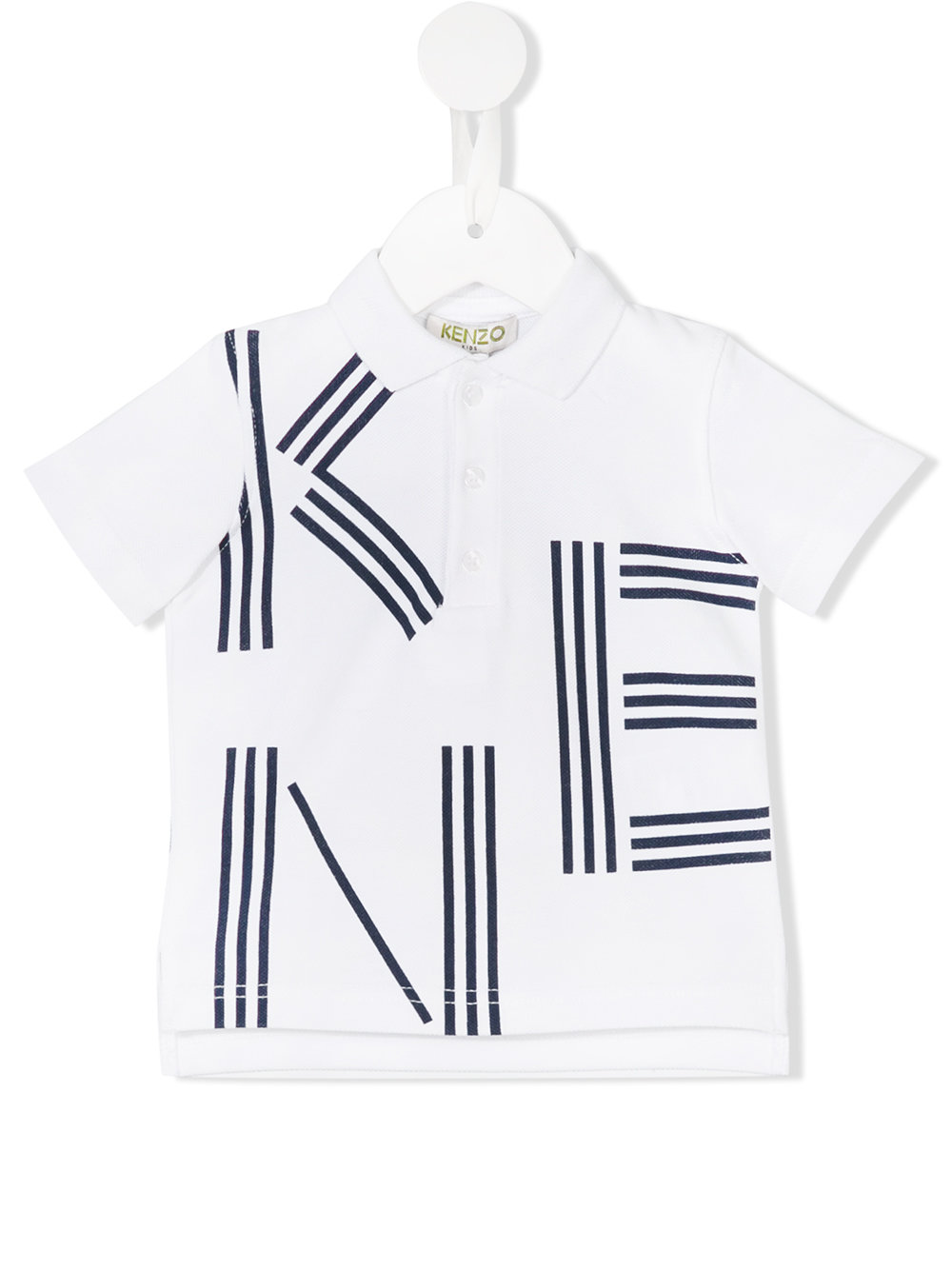 - Cool kids will love the new Kenzo Kids’ collection. Expect lively prints and signature vibrant-hued dresses, T-shirts and sweats. This white cotton logo print T-shirt features a round neck, short sleeves and a straight hem.