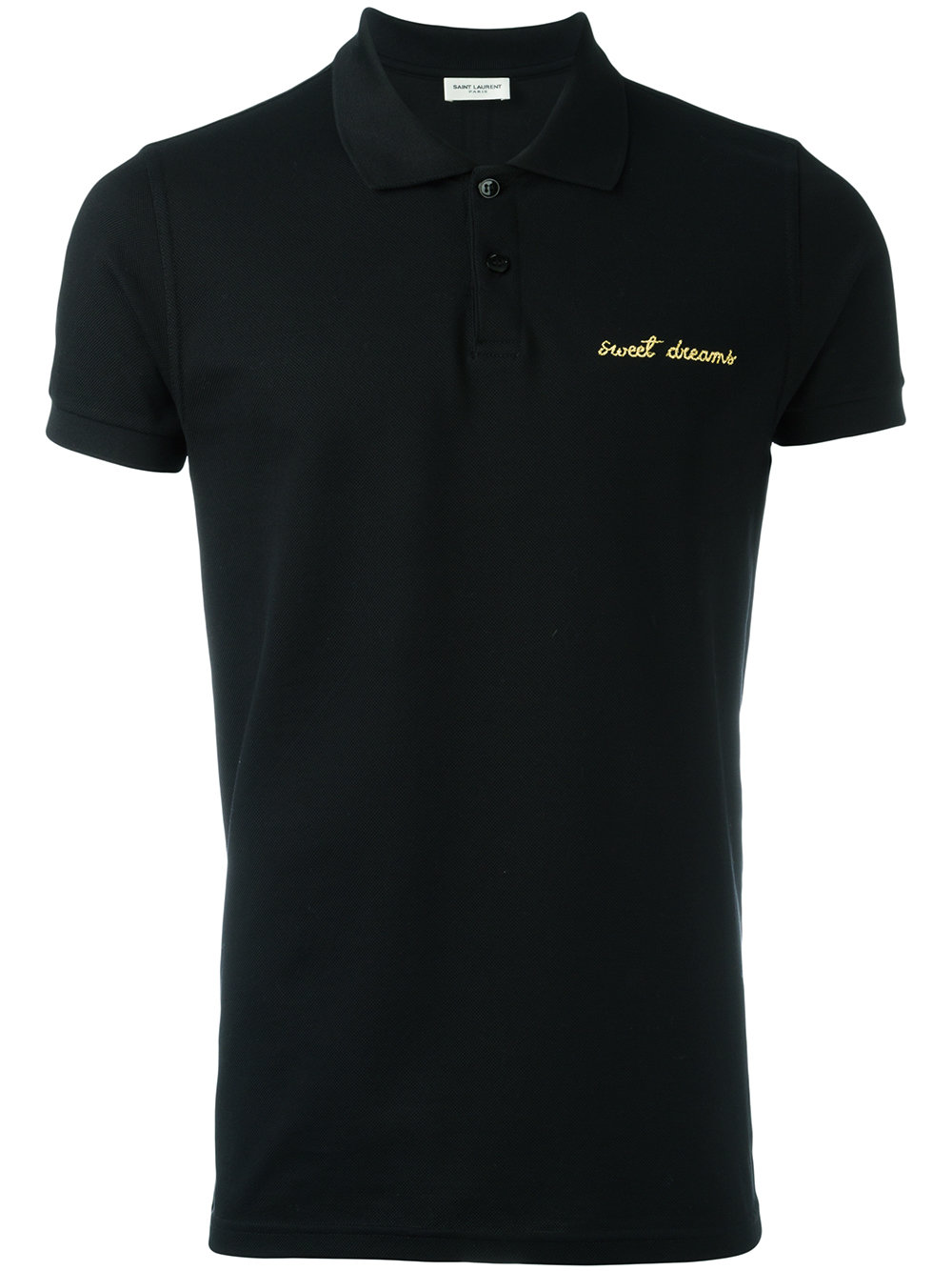 - Saint Laurent (圣罗兰) 黑色 全棉 Sweet Dreams刺绣polo衫。 经典polo领, 正面竖排纽扣, 短袖, 罗纹细节, 平直下摆。
