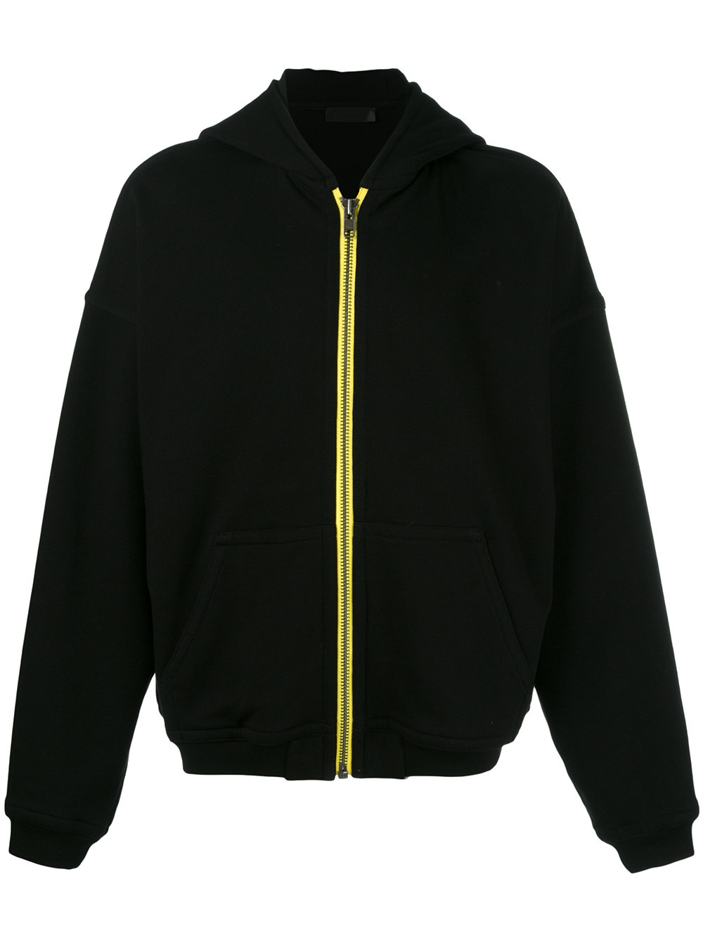 - Haider Ackermann 黑色 全棉 对比拉链连帽夹克。