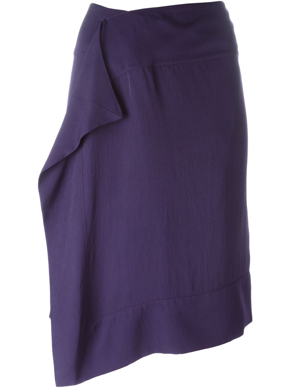 - A.F.Vandevorst 紫蓝色 '161 Seal'半身裙。 及膝, 垂褶设计。