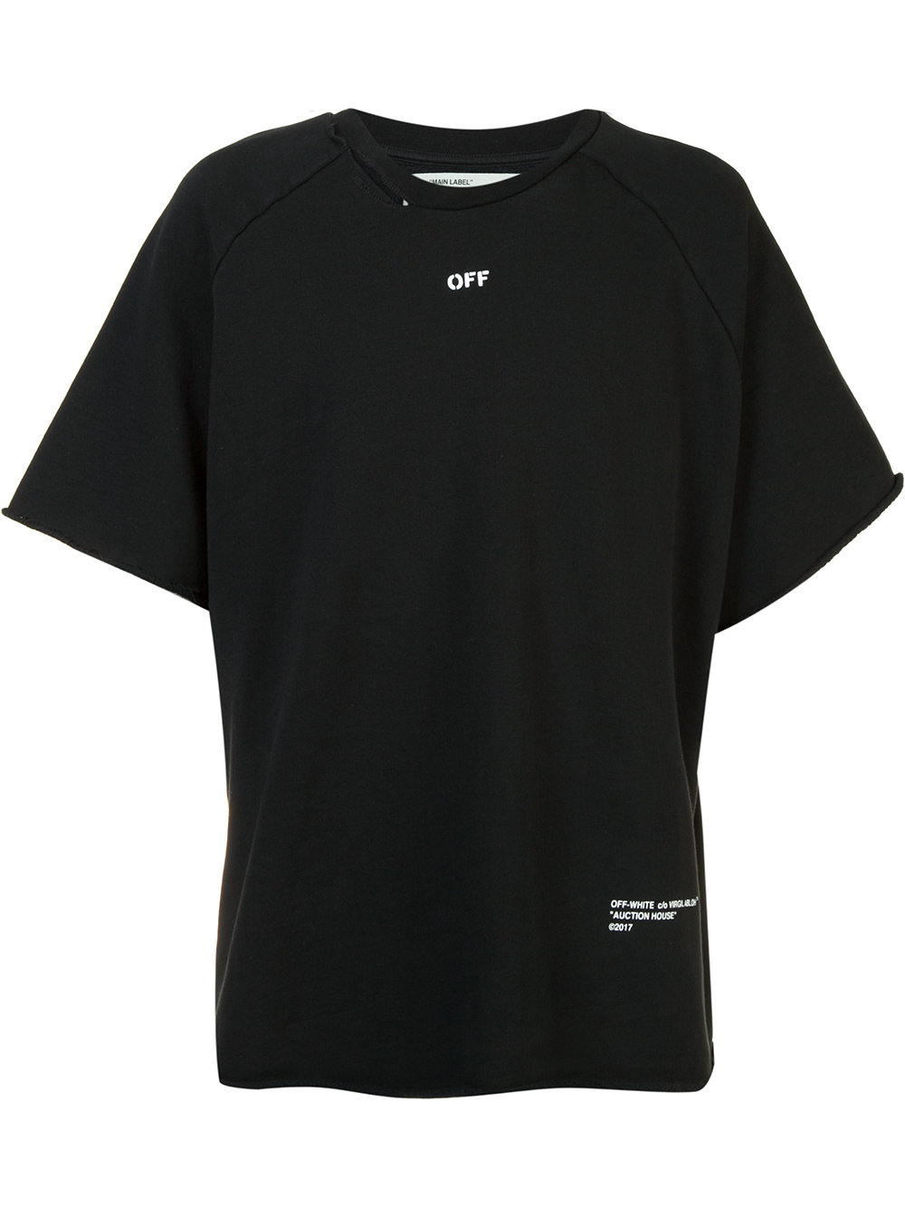 - Off-White 黑色 全棉 Auction House仿旧套头衫。 圆领, 特大款, 阔短袖, 露出针脚细节, 下摆采用不规则剪裁。此商品是Off-White x Virgil Abloh合作设计的Auction House限定系列,并由Maxfield买手店独家销售。