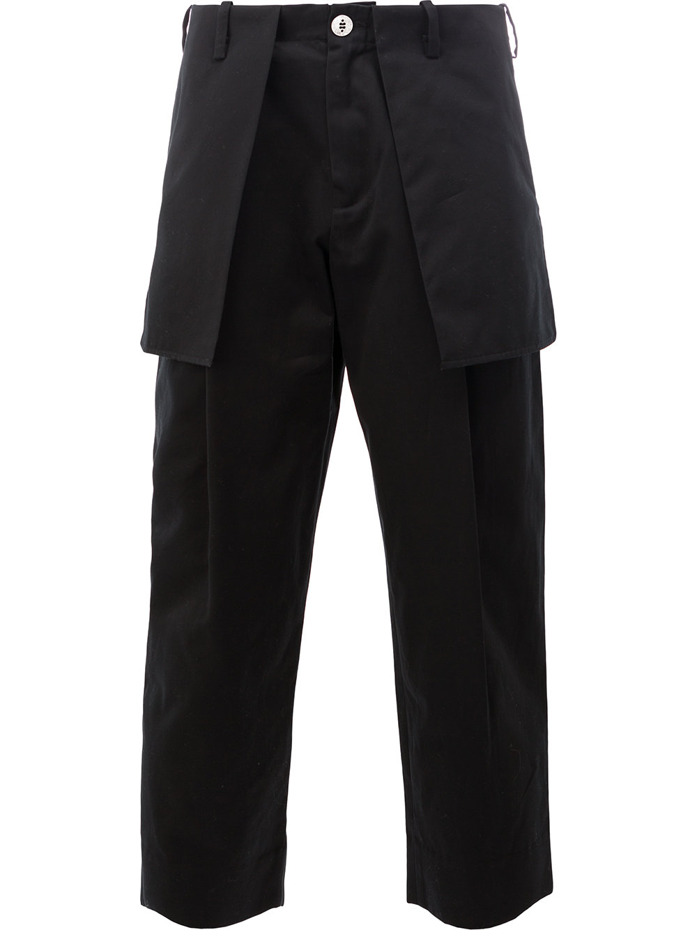 - Aganovich 黑色 全棉 超长口袋九分裤。
