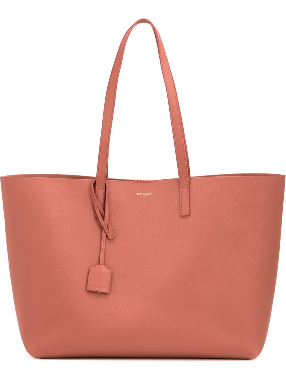 - Saint Laurent 玫瑰粉色 牛皮 大号购物手提包。 磁性摁扣, 顶部有两个手柄, 皮质吊牌, 正面饰有浮雕品牌标记, 可拆卸口袋。