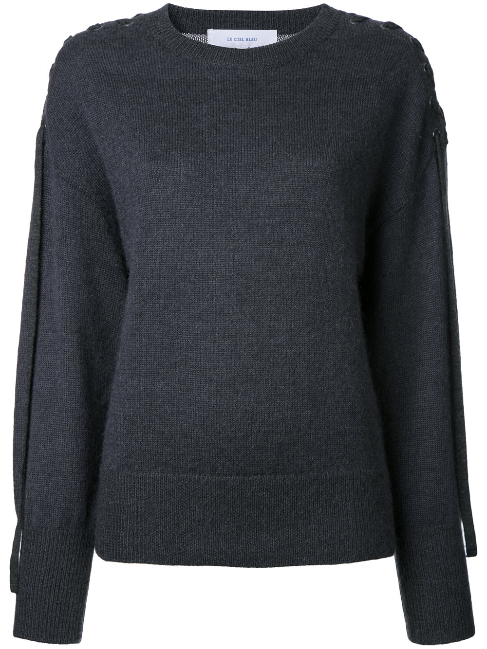 - Grey wool lace-up jumper from Le Ciel Bleu.
