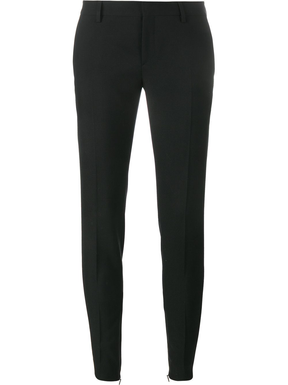 - Saint Laurent (圣罗兰) 黑色 棉质与初剪羊毛 防水拉链裤管长裤。 高腰, 系腰带袢腰边, 钩与拉链, 侧置插袋, 后面有平袋, 锥形腿, 一般长度。