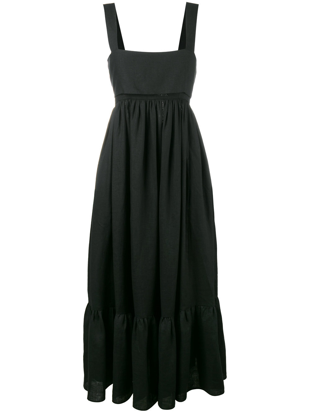 - Black linen pinafore maxi dress from Chloé.