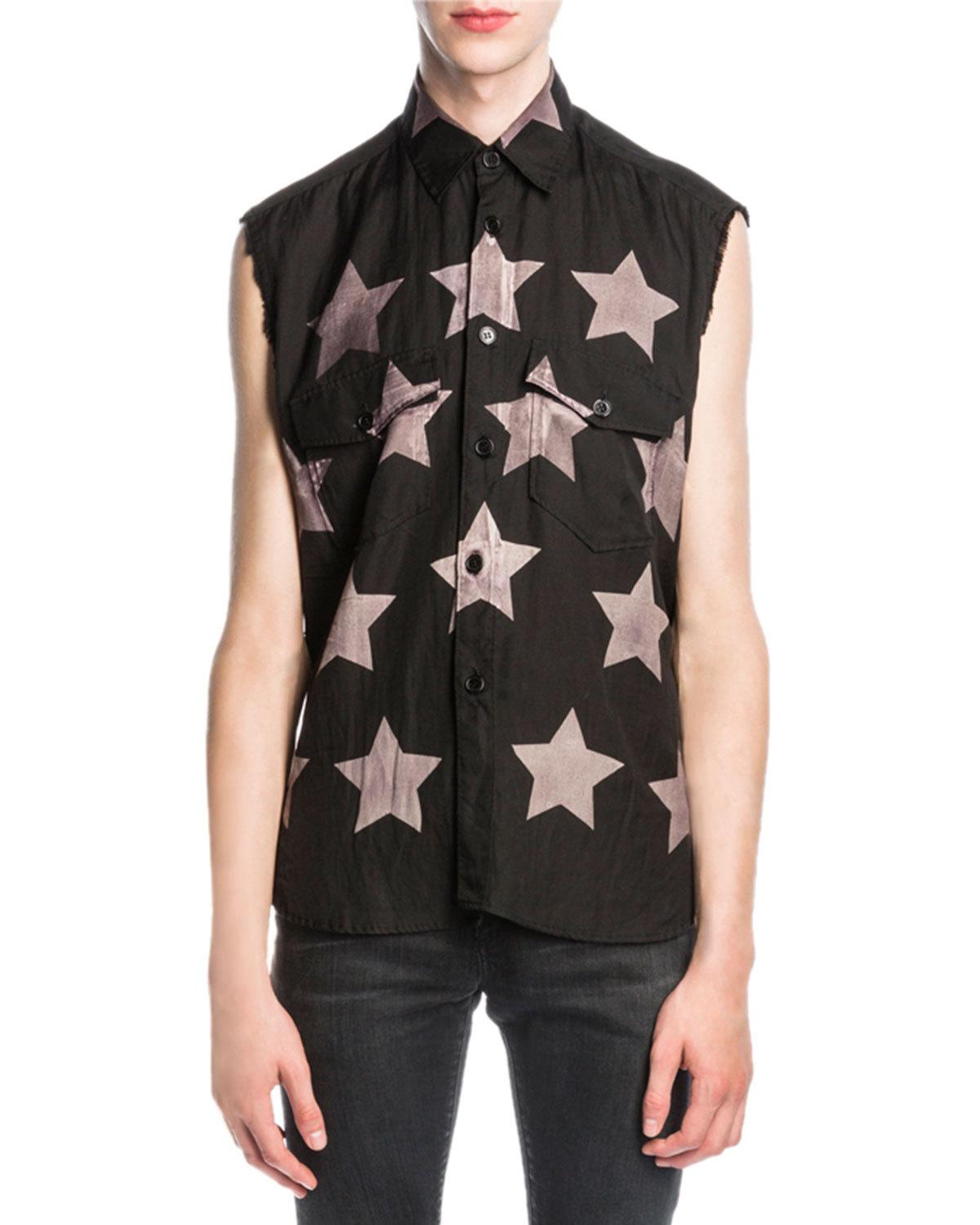 Saint Laurent Bleached-Star Sleeveless Shirt, Black