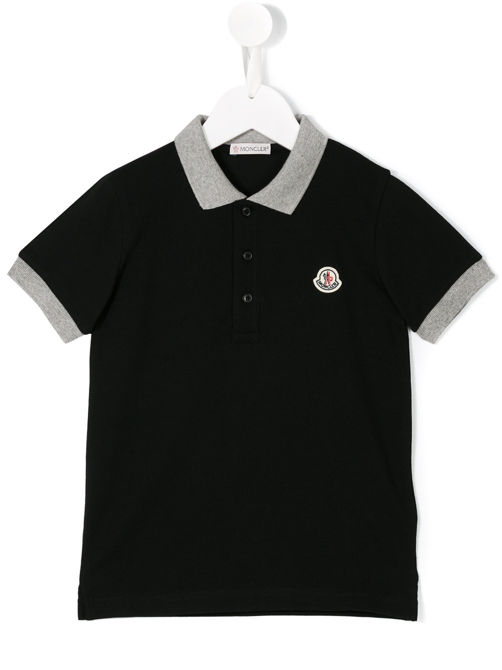 - Black cotton classic polo shirt from MONCLER KIDS featuring a classic polo collar, short sleeves and a straight hem.