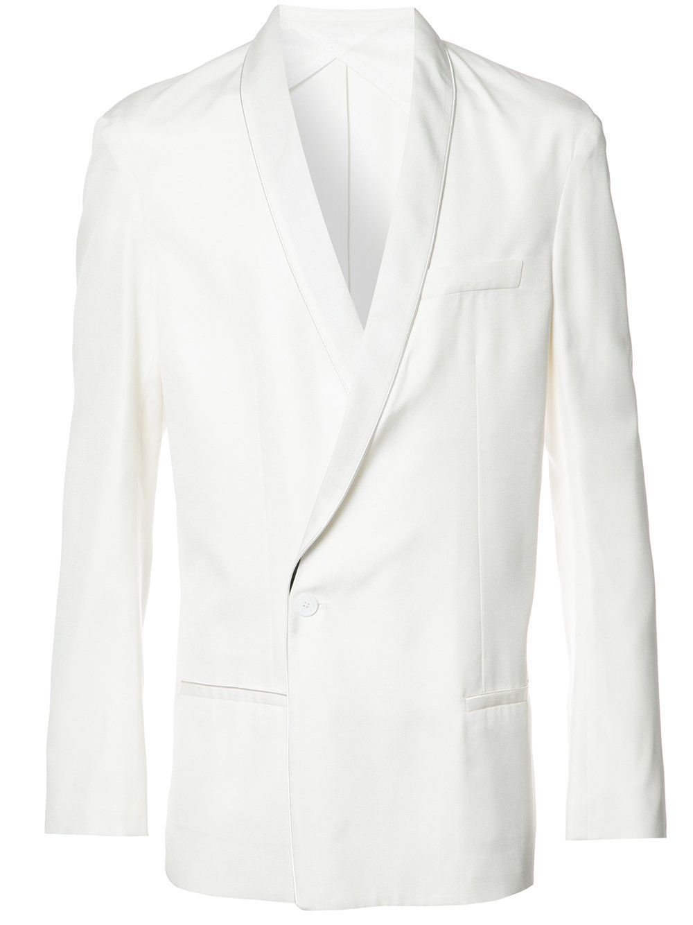 - Ivory white cotton blend and silk shawl lapel crossed blazer from Haider Ackermann.