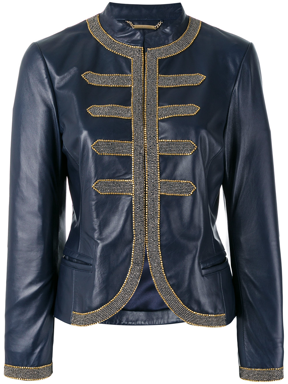 - Alberta Ferretti 黑色 小羊毛 珠绣滚边夹克。
