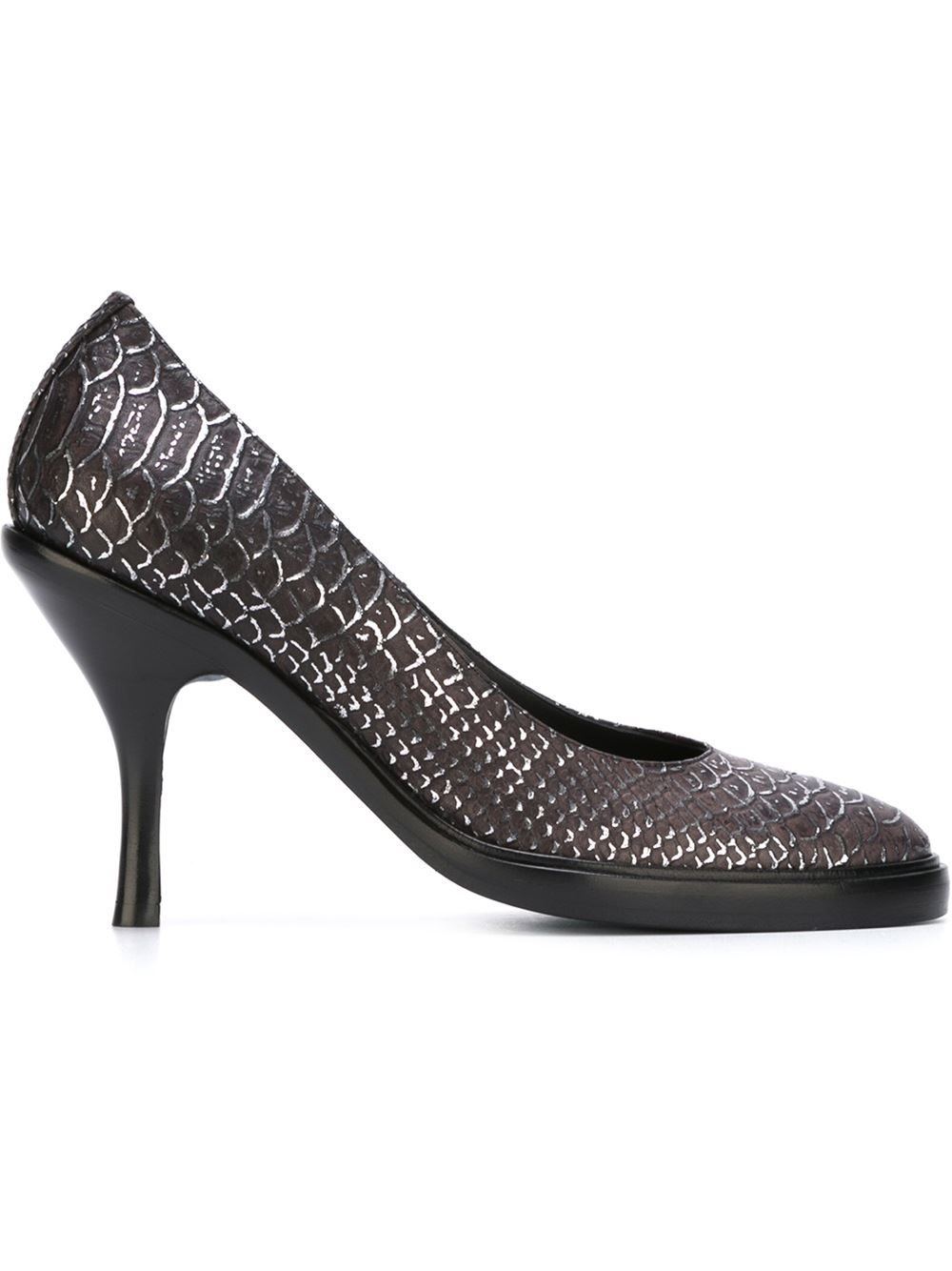 - A.F.Vandevorst 黑色 小牛皮与牛皮 '161X425'高跟鞋。 杏仁形鞋尖, 蛇皮效果, 中高细跟。