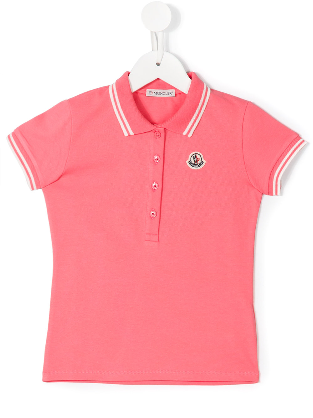 - Pink cotton classic polo shirt from MONCLER KIDS featuring a classic polo collar, short sleeves and a straight hem.