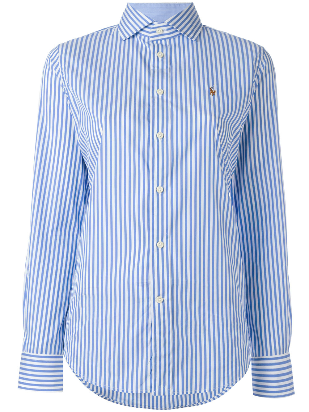 - Blue and white cotton striped shirt from Polo Ralph Lauren.