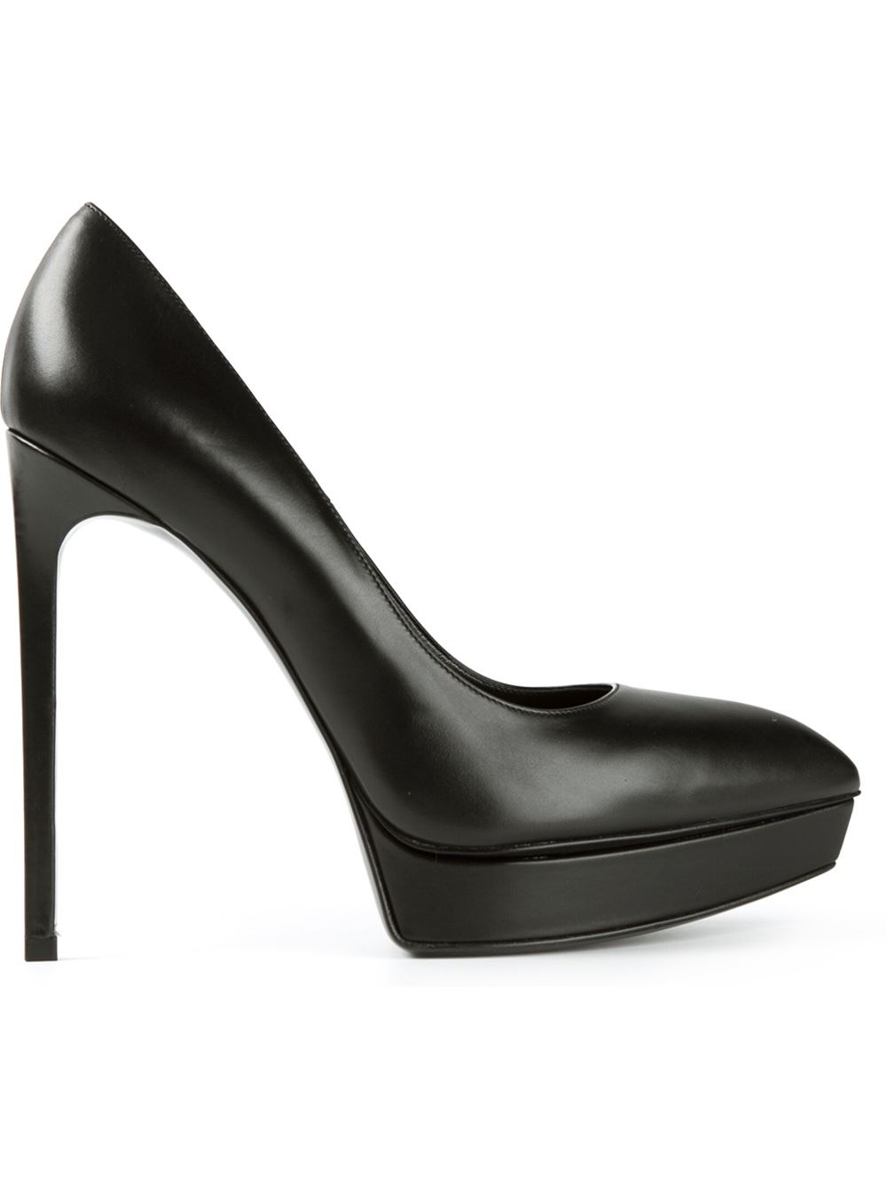 - Saint Laurent 黑色 真皮 厚底高跟鞋. 尖头. 鞋垫饰有品牌浮雕. 细高跟.
