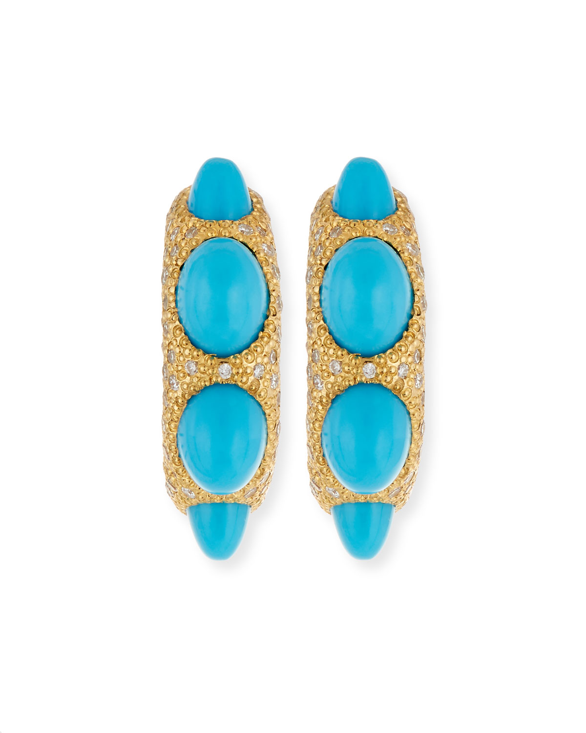 Chantecler Jackie Turquoise Cabochon & Diamond Hoop Earrings