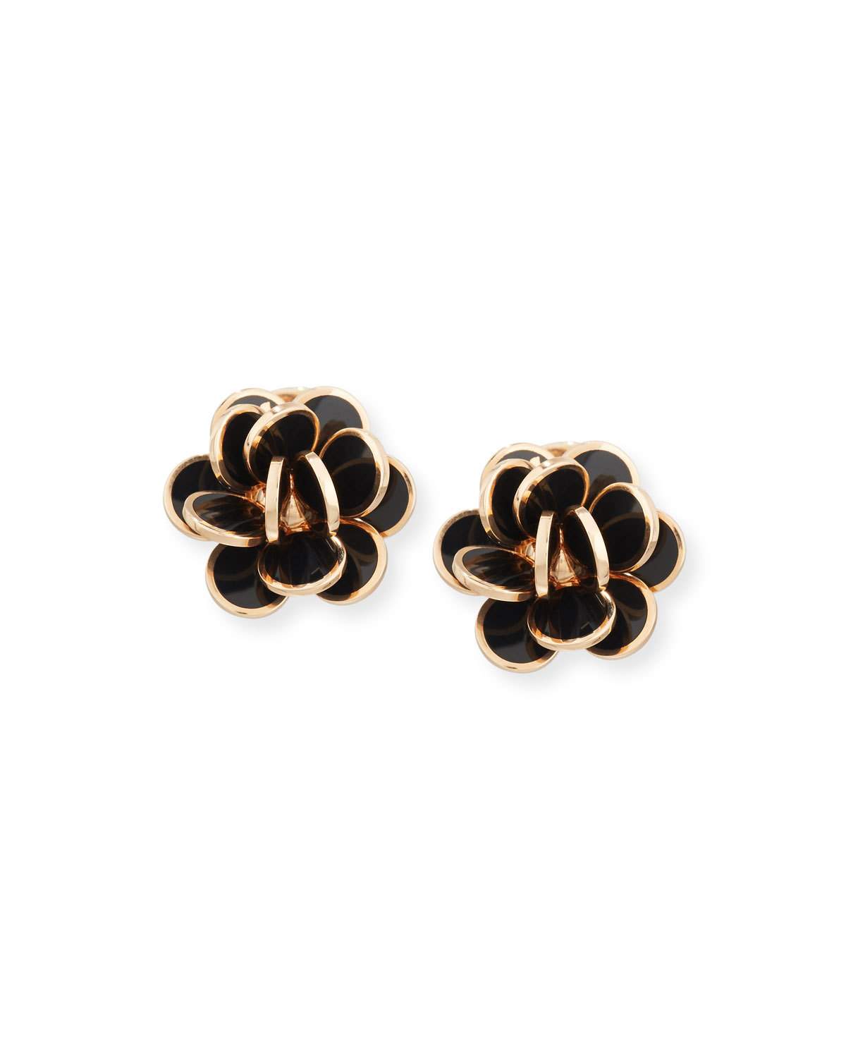 Chantecler Paillette Black Bezel Cluster Earrings in 18K Rose Gold