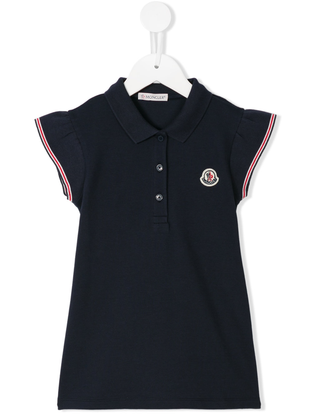 - MONCLER KIDS 蓝色 弹性棉质 polo连衣裙。 经典polo领, 短袖, 平直下摆。