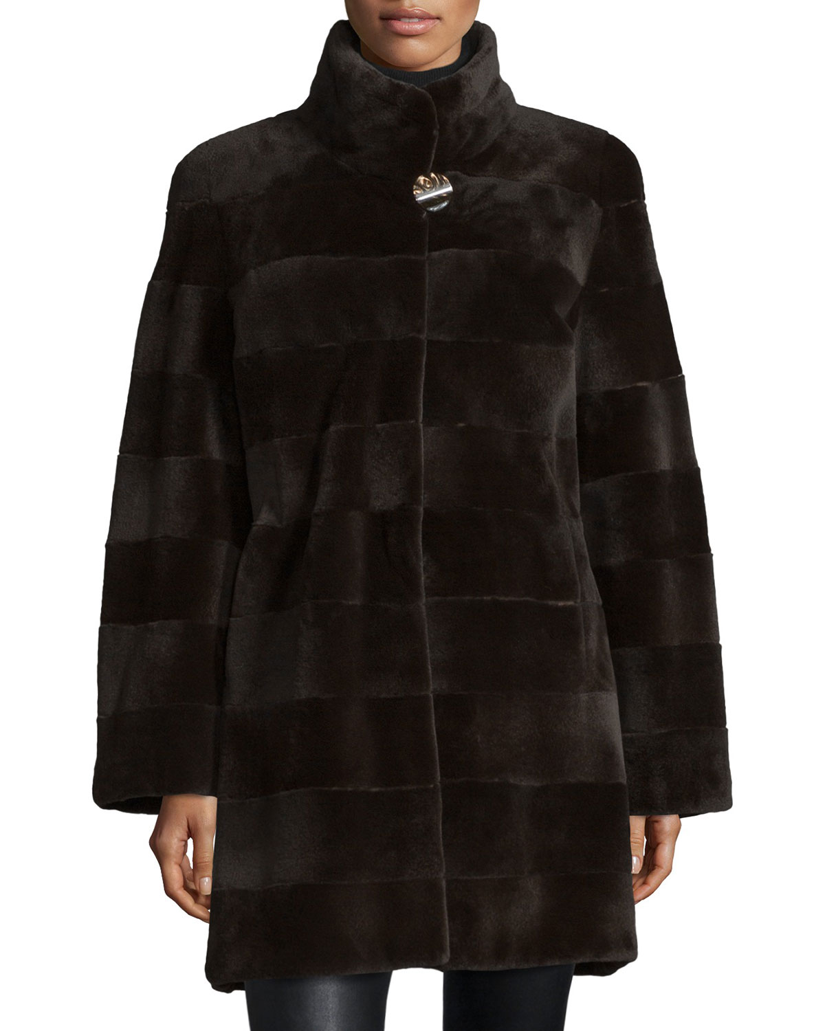 Gorski Horizontal-Striped Mink Fur Long Coat