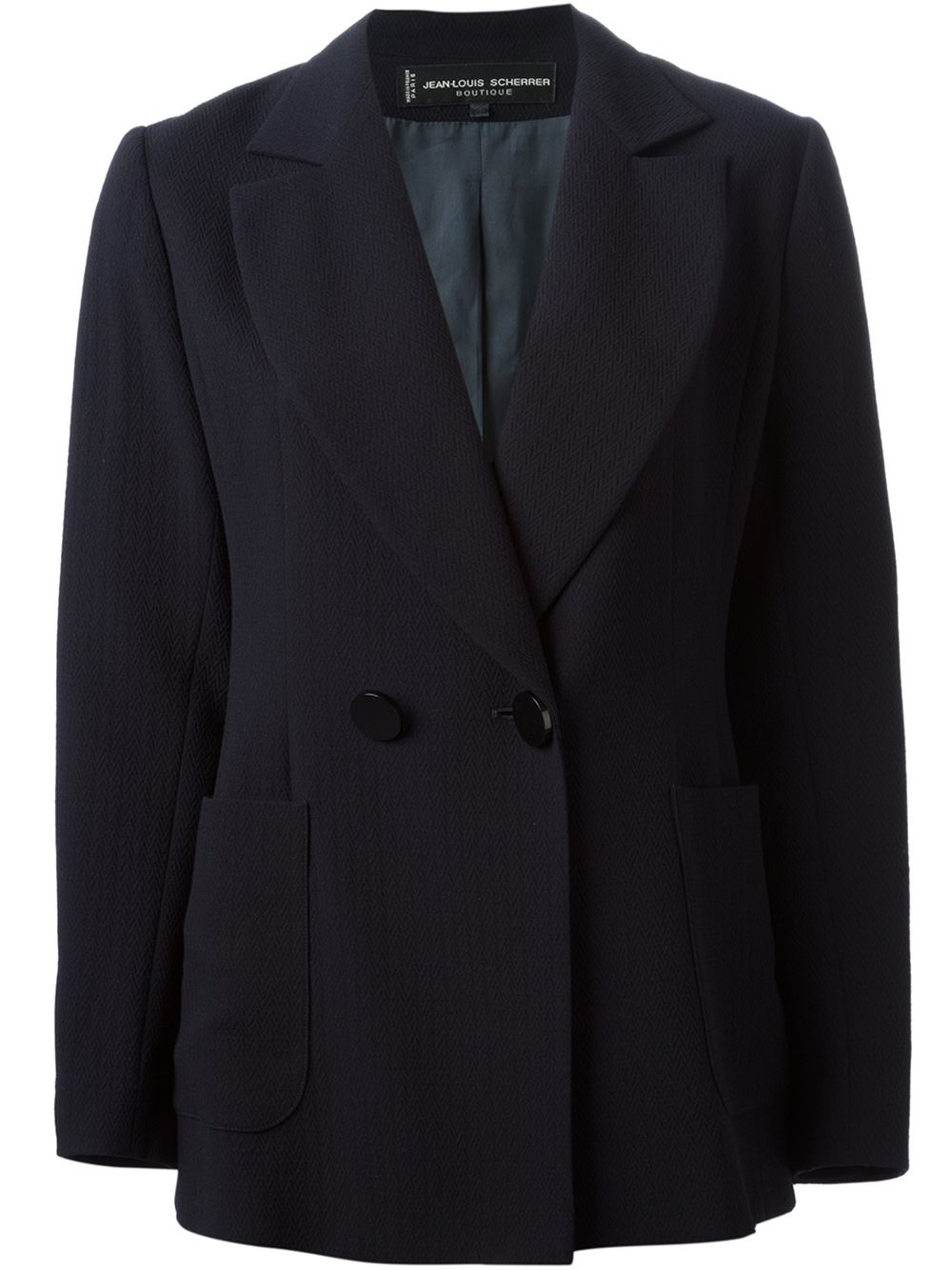 - Jean Louis Scherrer Vintage 蓝色 羊毛 宽松长裤西装套装。 梯型翻领, 正面有双排扣, 贴袋, 长袖, 搭扣袖口, 系腰带袢腰边, 隐藏式拉链, 褶饰腰边, 侧置口袋, 阔腿, 约莫出自1970年代。请注意,古着(vintage)商品并非新的,因此可能有轻微的瑕疵。
