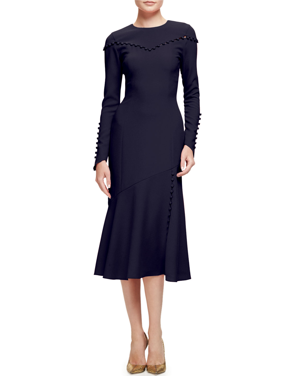 Prabal Gurung Button-Trim Long-Sleeve Midi Dress, Navy