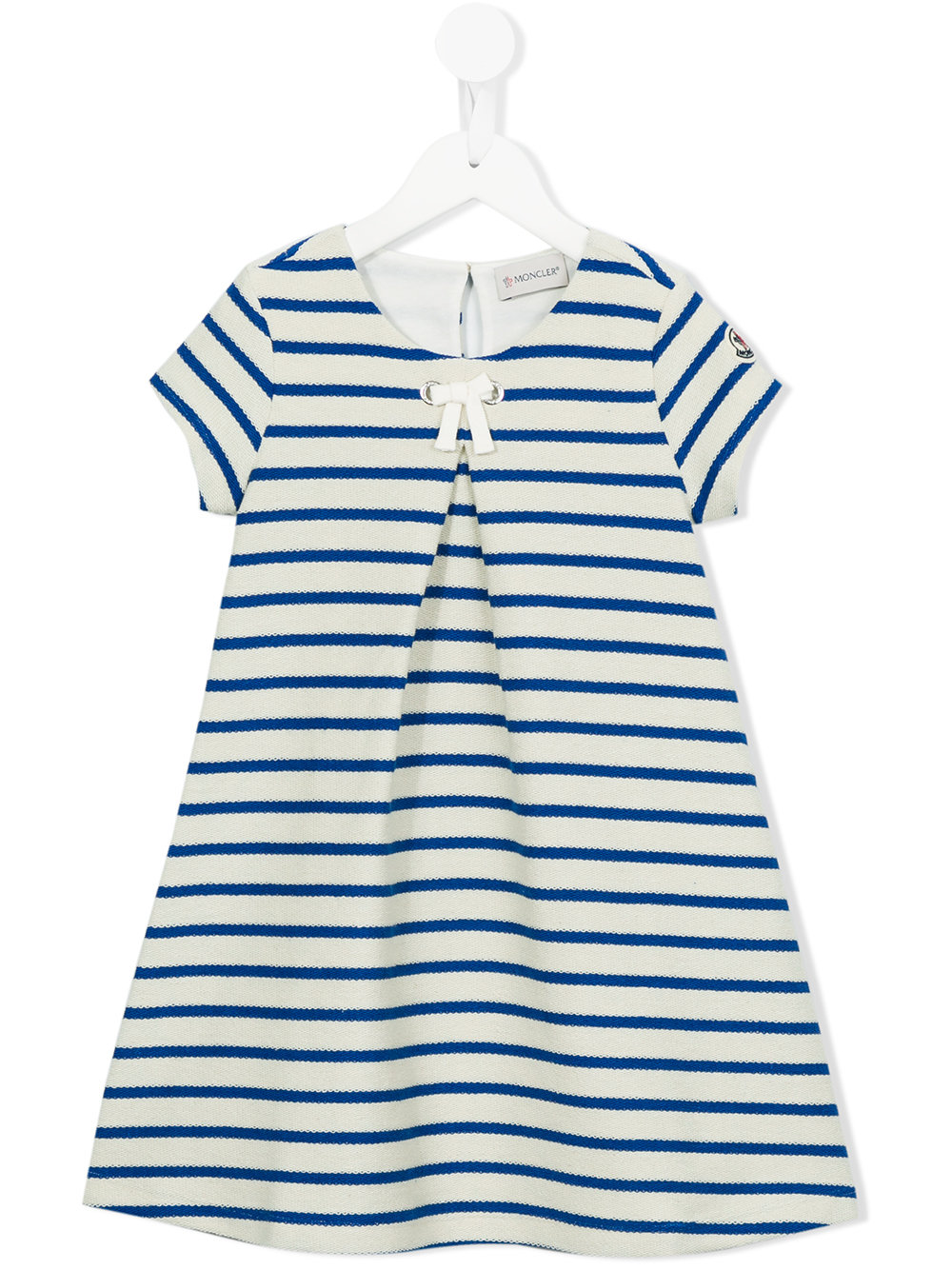 - Blue and white cotton striped dress from MONCLER KIDS featuring a round neck, a back button fastening, short sleeves and a straight hem.