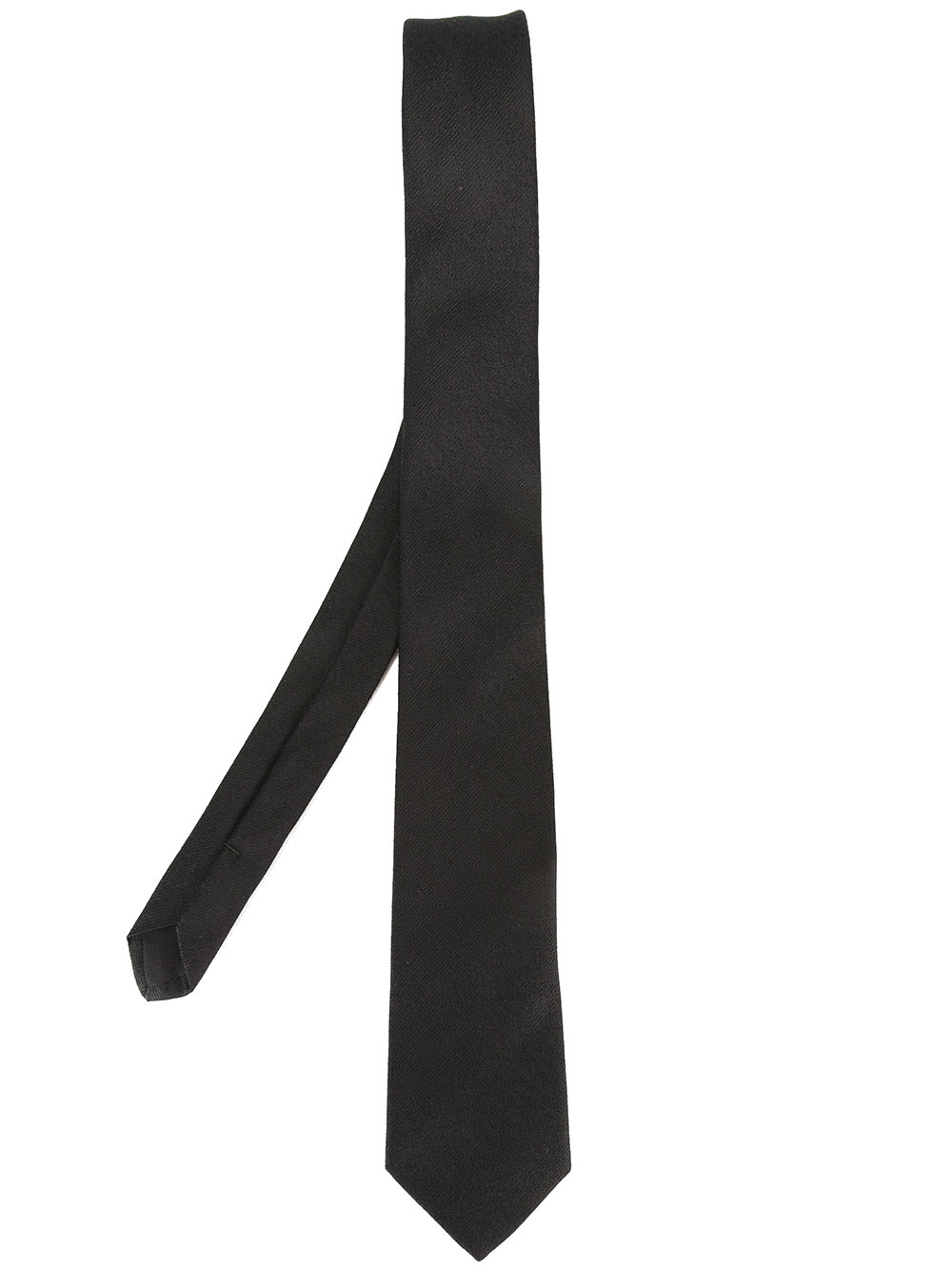 - Black silk Signature Evening skinny tie from Saint Laurent featuring a pointed tip.