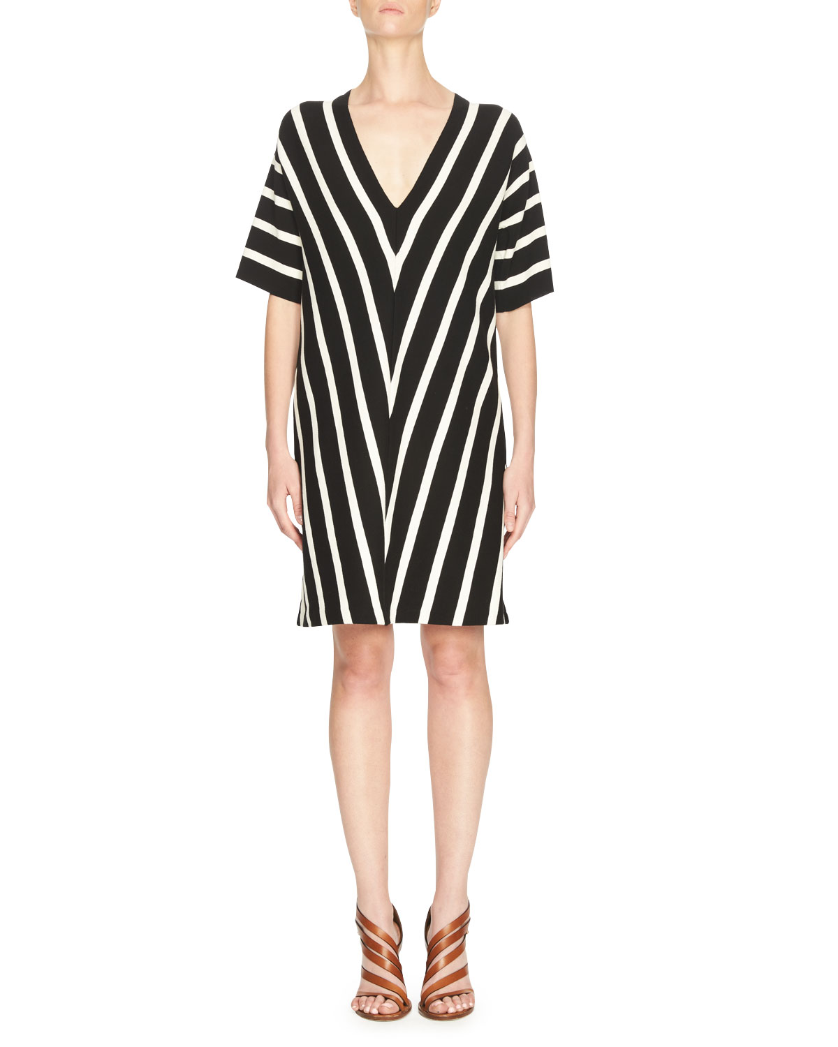 Chloé Chevron V-Neck Short-Sleeve Knit Dress, Black/White