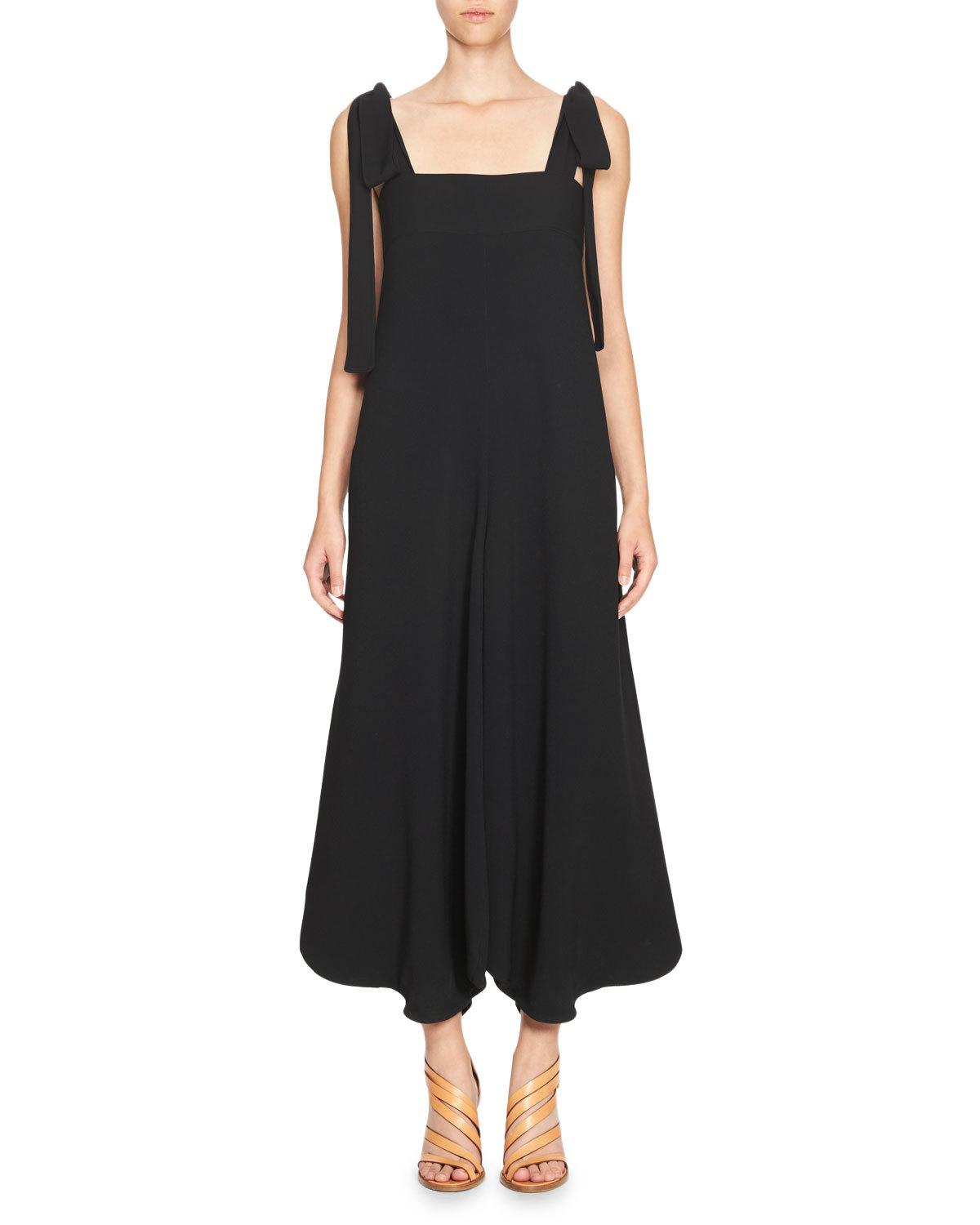 Chloé Bow-Shoulder Sleeveless Jumpsuit, Black
