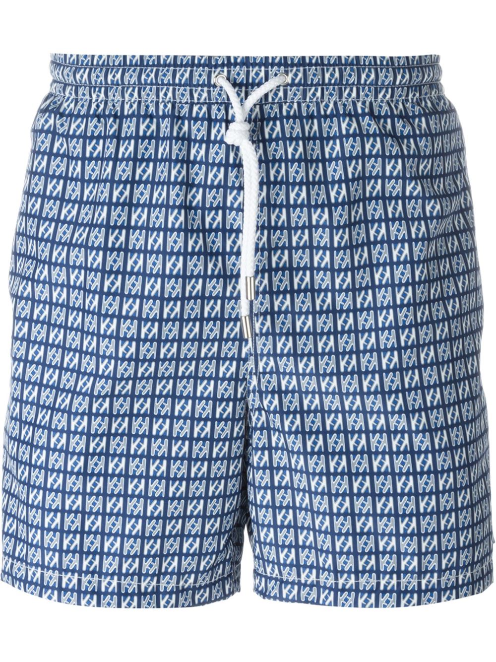 - Kiton 蓝色 几何印花泳裤。试穿泳装商品时,请穿着于自身衣物之外。
