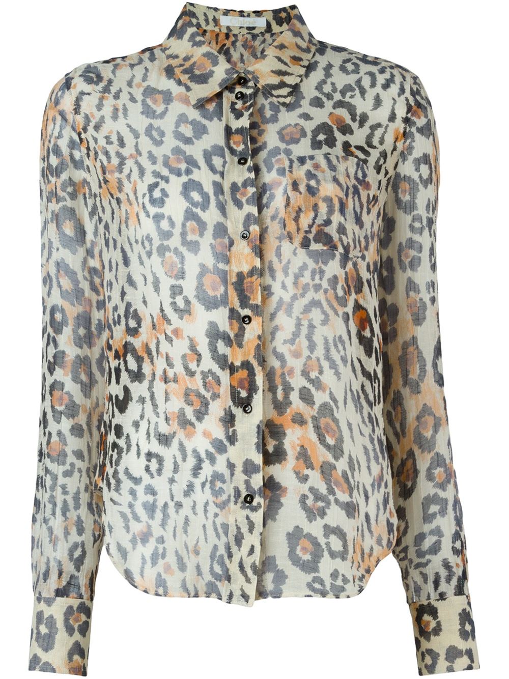 - Chloé 多色 棉质与亚麻混纺 豹纹印花衬衫。 经典衣领, 长袖, 正面纽扣, 搭扣袖口。