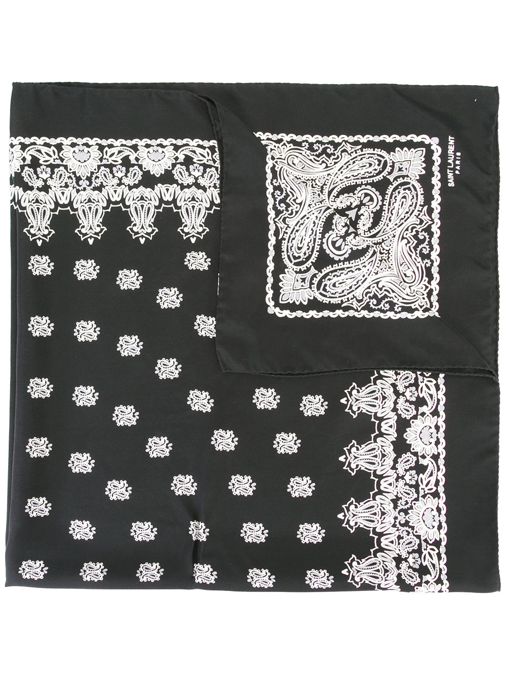 - Black and white silk printed neck scarf from Saint Laurent featuring a floral pattern.
