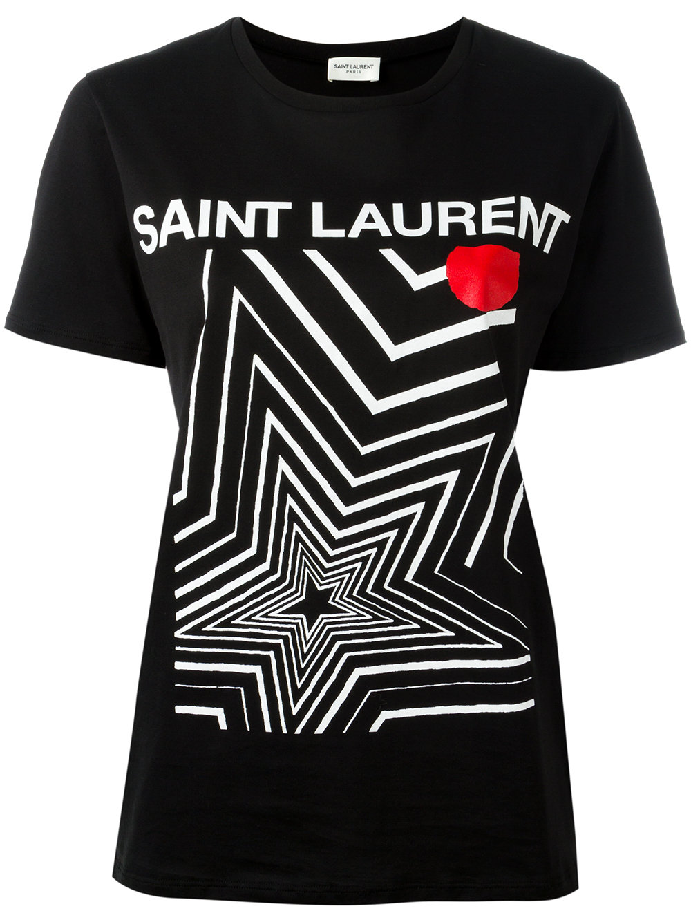 - Black, white and red cotton star print oversized T-shirt from Saint Laurent featuring a ribbed round neck, short sleeves, a printed logo to the front and a straight hem.