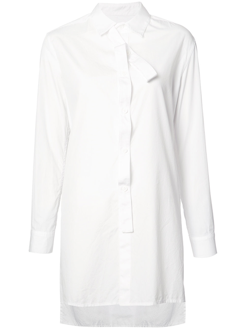 - Y's 白色 全棉 正面缎带饰衬衫。