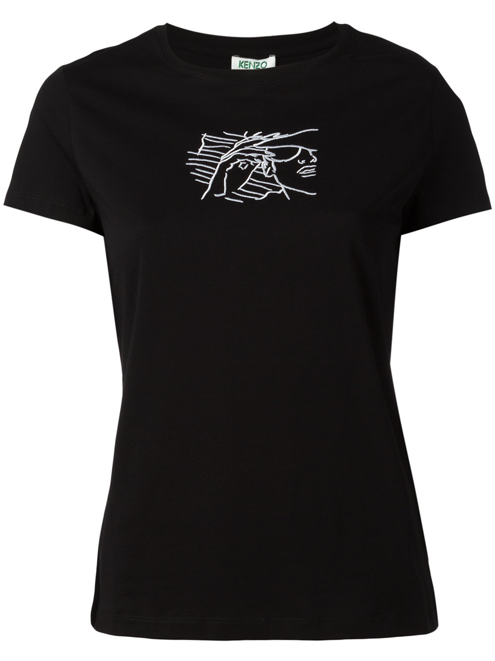 - Black cotton embroidered face T-shirt from Kenzo featuring a fitted silhouette, short sleeves, a straight hem and contrast embroidered face motif.