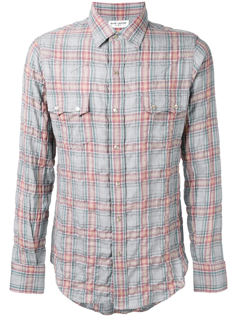 - Multicoloured checked shirt from Saint Laurent featuring a classic collar, a check print and a snap button closure.