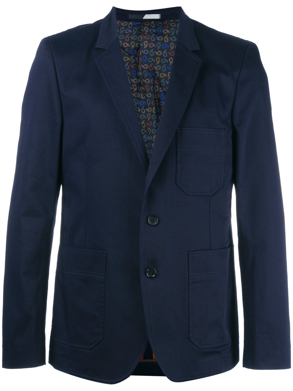 - Ps By Paul Smith 蓝色 弹性棉质 贴袋西装夹克。