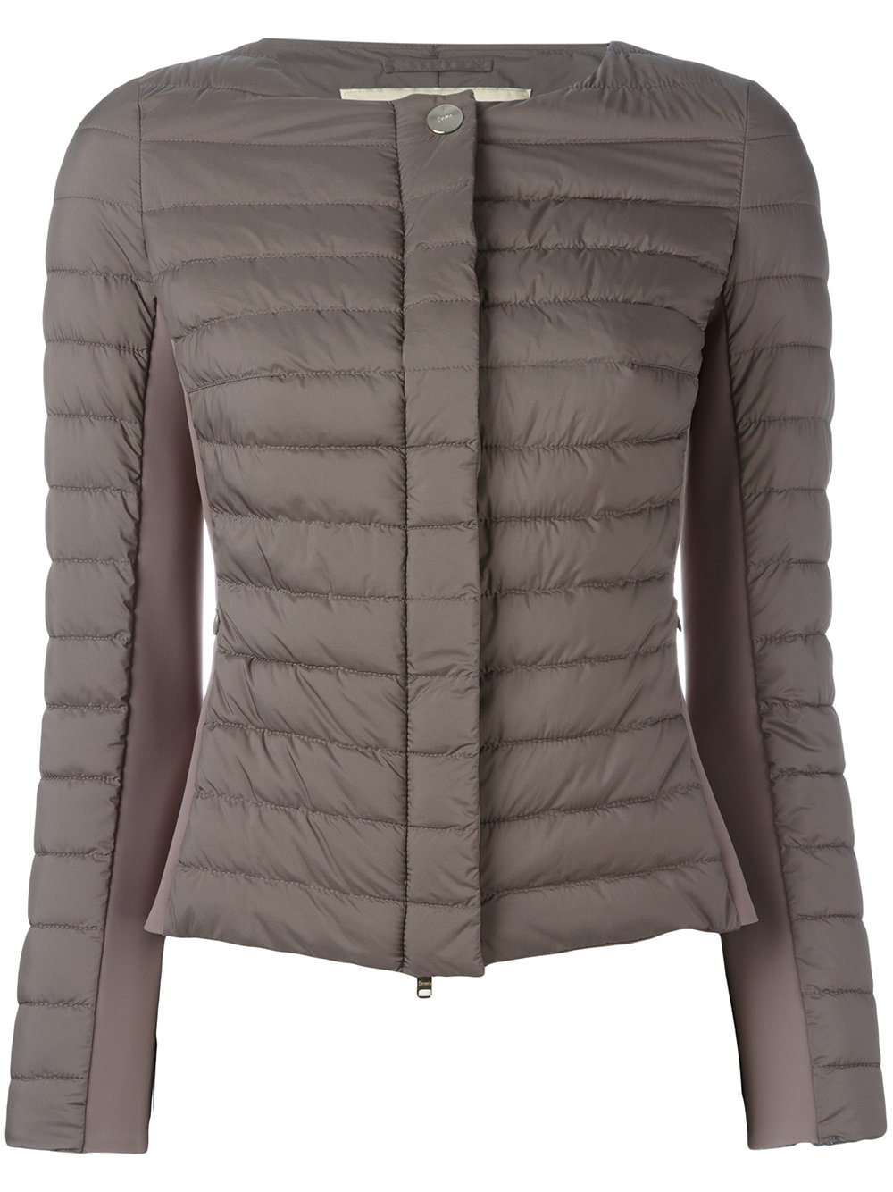 - Brown collarless padded jacket from Herno.