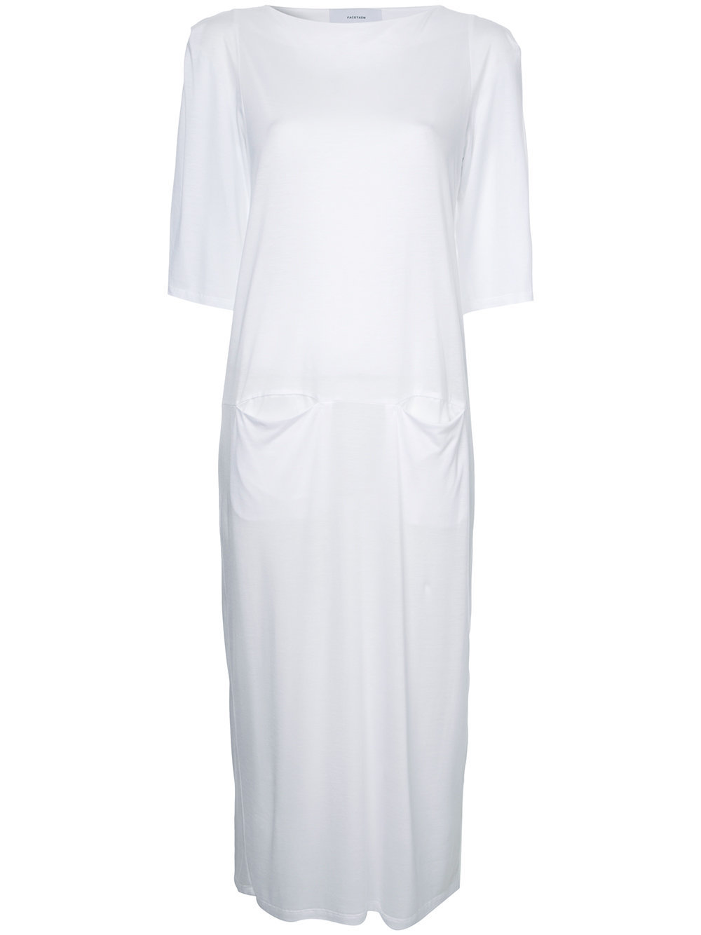 - Facetasm 白色 正面口袋T恤式连衣裙。