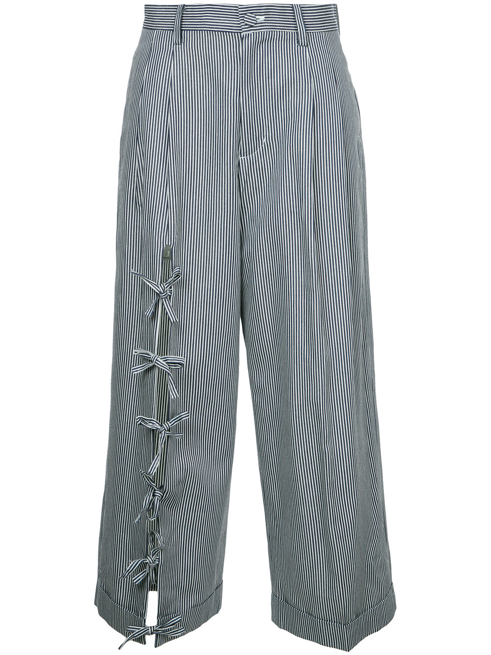 - Facetasm 蓝色 棉质混纺 绑带九分裤。