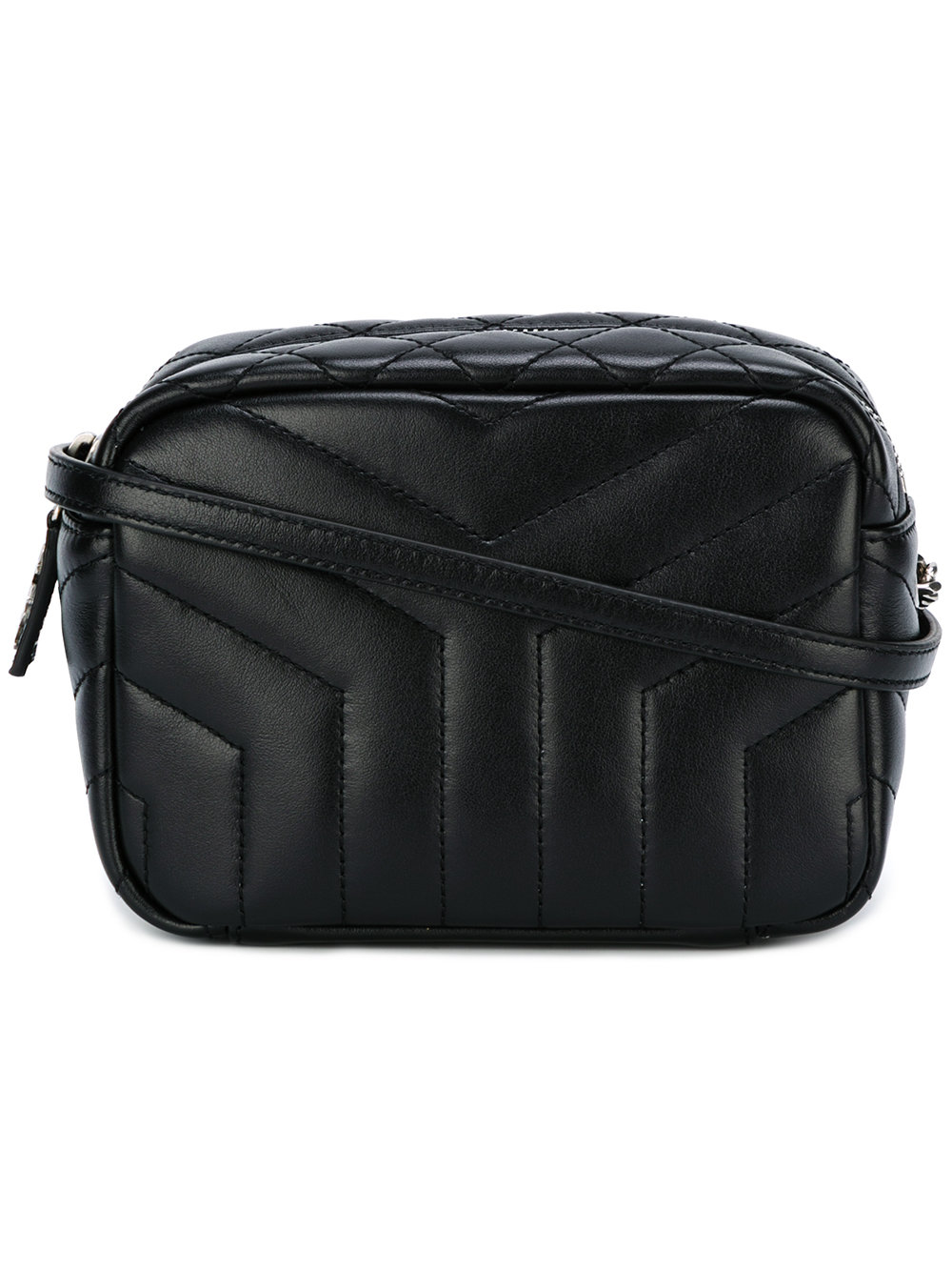 - Black leather Toy Monogram Bowling bag from Saint Laurent featuring a cross body strap, a top zip fastening, a side embossed logo stamp and a quilted effect.
