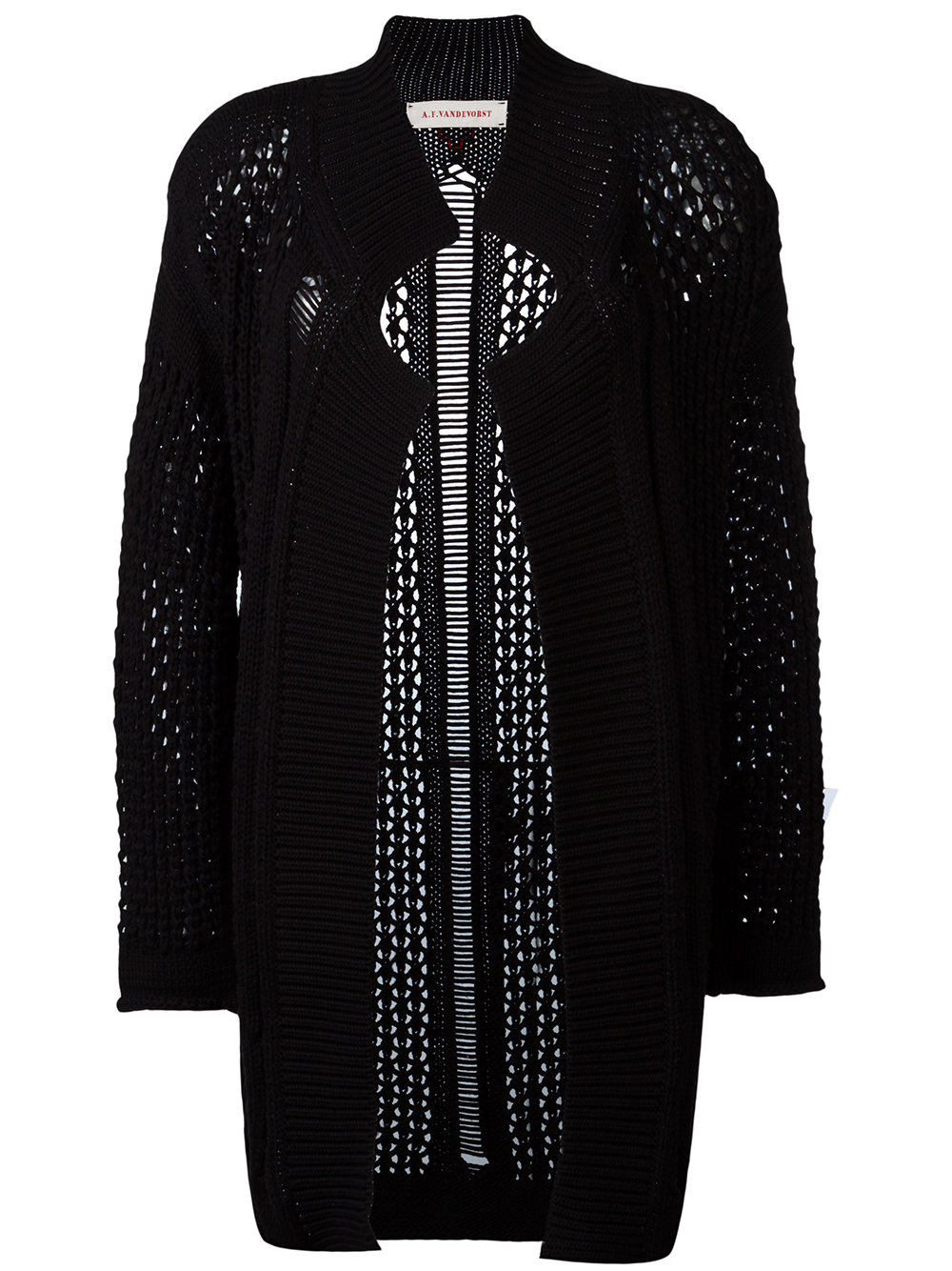 - Black cotton-blend open knit cardigan from A.F.Vandevorst.
